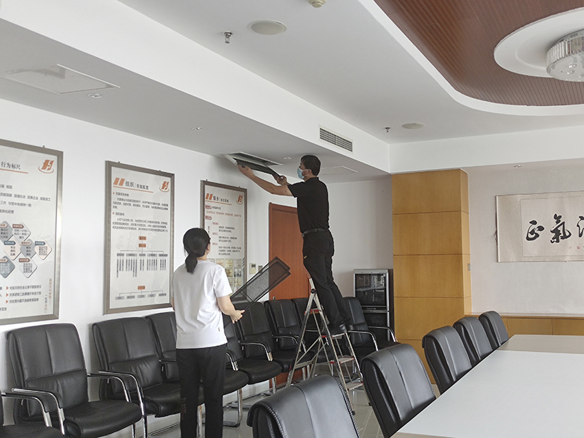 盛夏來臨之際,泰和大廈用電管理小組踐行公司“勤儉持家”經(jīng)營理念,主動對區(qū)域內空調風口全部進行清洗,以提高空調效能、降低能耗、節(jié)省用電。