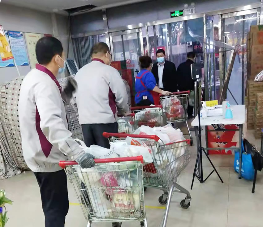 從16個人的崗位到全店僅剩5人能正常到崗,且疫情期間生活必需品需求增多,每個人承擔的勞動量成倍增加,但民生店的同事們沒有放棄,而是盡最大努力滿足顧客需求,為市民們提供充足的生活物資和周到的配送服務。盡管疫情當前有諸多困難要克服,但店長郭偉榮以陽光、積極向上的心態感染著大家,有計劃、有安排地帶領大家有條不紊地展開工作。雖然是女同志但她以身作則,率先扛起了店里最累最苦的活,不僅及時在社區群里與居家員工配合,運用線上接龍等方式及時接收顧客需求信息;還要跟自愿值班留宿的趙泉泉負責配送服務,保質保量地配貨上貨送貨。劉文龍粗中有細,哪里缺人哪里頂上,并且自愿值班留宿保證超市工作;戴紅玉別看身板小,干起活來一點都不輸爺們,巾幗不讓須眉;陳虎民每天搬貨卸貨,一歇不歇……小小的團隊迸發出大大的力量,每個人都在毫無保留地發揮著自己的能量,給人帶來大大的溫暖和感動!