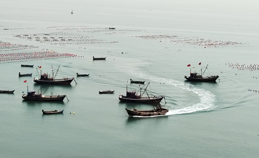 兒子是個(gè)釣魚迷,經(jīng)常聽我們說起渤海中間海水的清澈,在天氣好時(shí)能看到十幾米深,那些黑頭魚成群來往,根本不用釣,弄一個(gè)筐,砸碎些海虹放進(jìn)去,一兜就是幾十條。尤其是大欽島的海水,在夕陽的透射下,呈現(xiàn)出的玻璃翠的顏色,令人久久難忘。于是,他就不斷提起,纏著我們前往。
